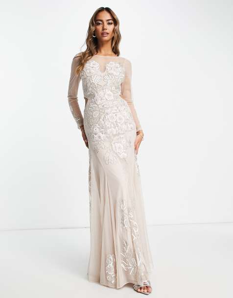 Web Cream Lace Maxi Dresses Featured Sort By. Stunning crochet lace overlays a nude lining as it shapes a darted halter bodice supported by adjustable spaghetti. Princess-seamed bodice rests above a fitted.