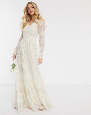 Y A S Wedding Maxi Dress With Plunge Neck In Cream Lace Asos